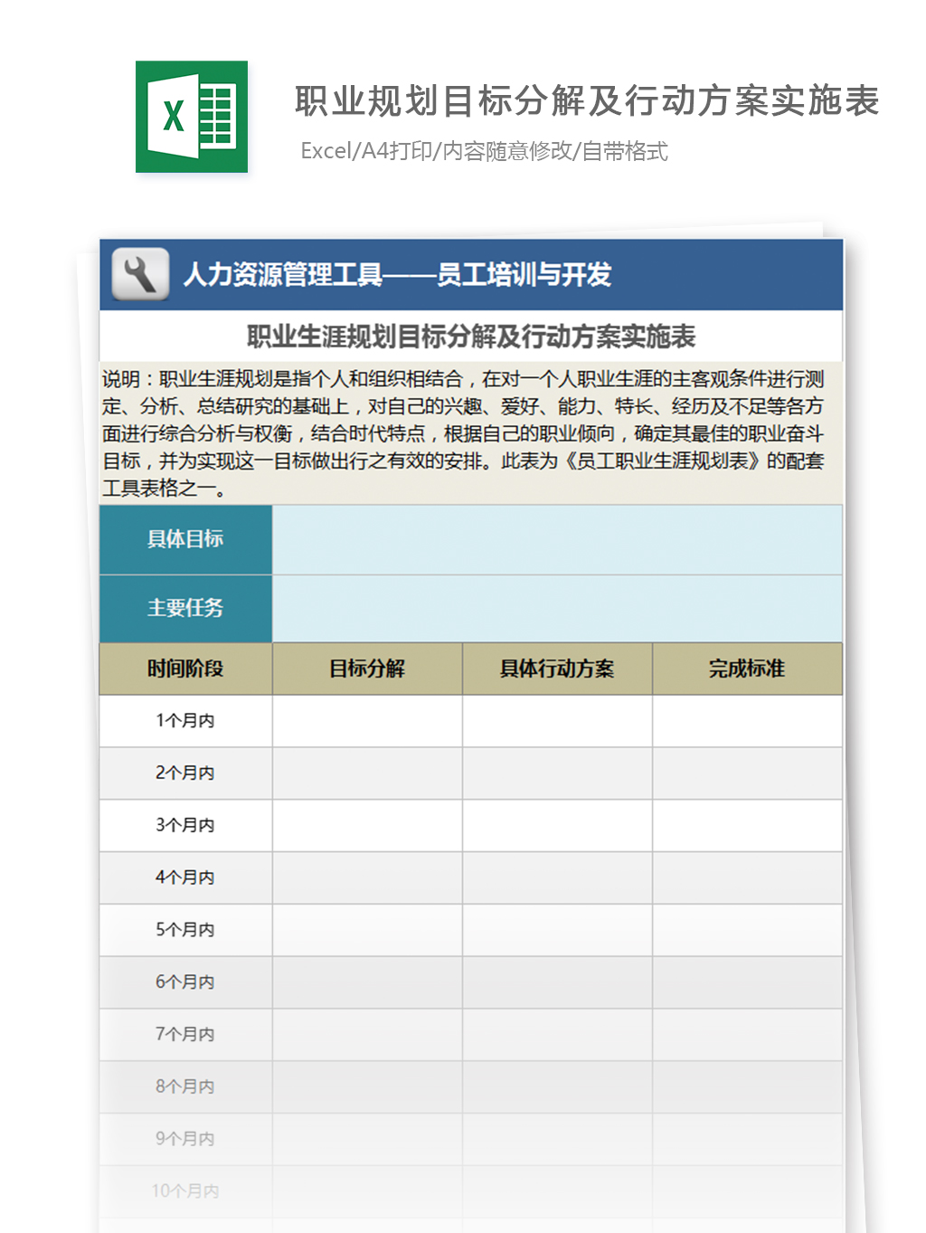 33、职业生涯规划目标分解及行动方案实施表模板