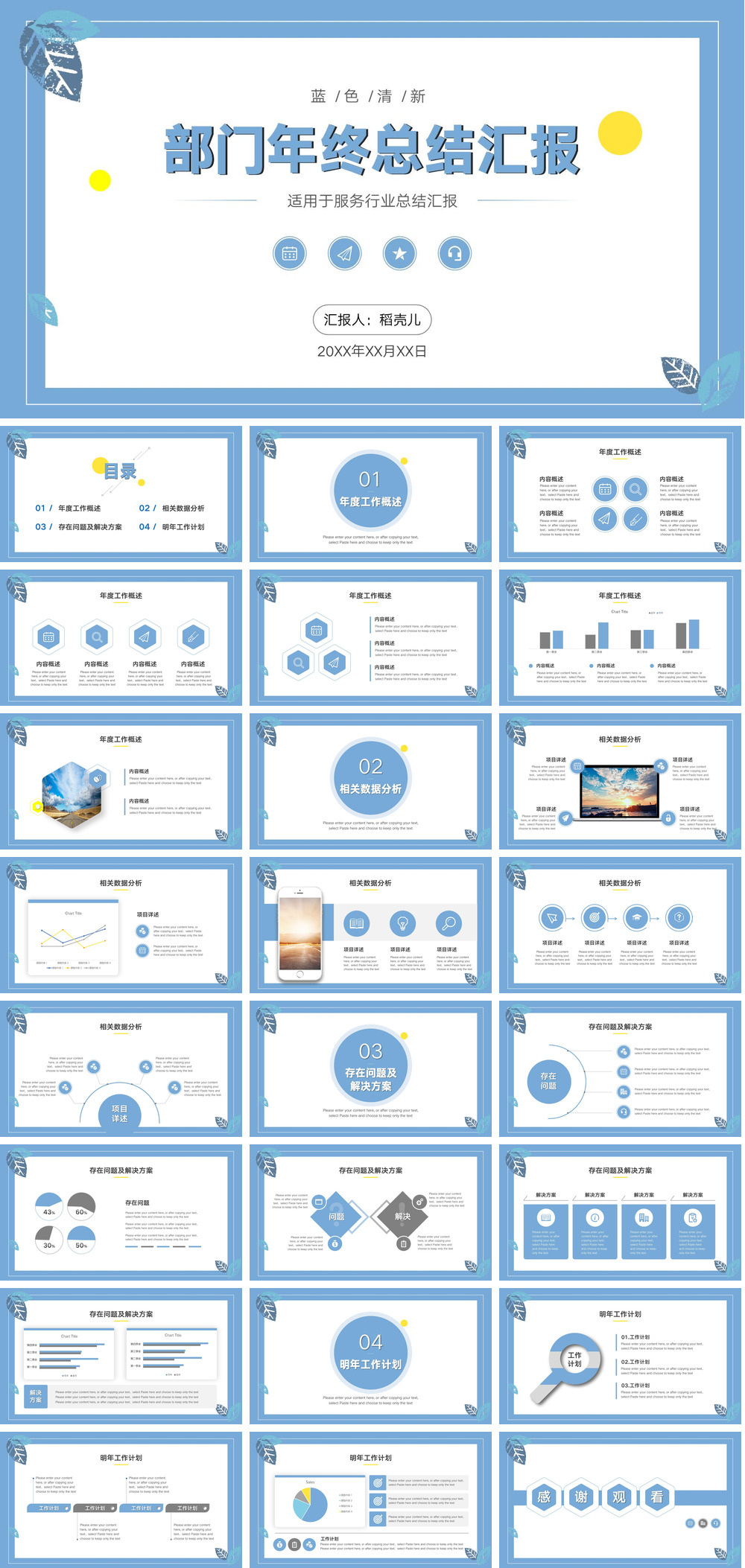 蓝色清新服务行业部门年终总结.pptx
