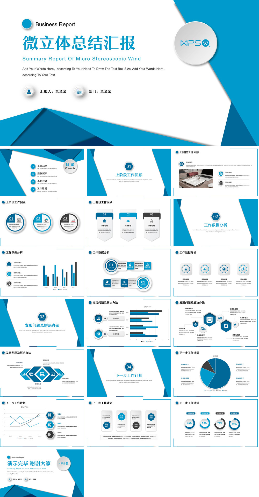 蓝色微立体工作汇报模板.pptx
