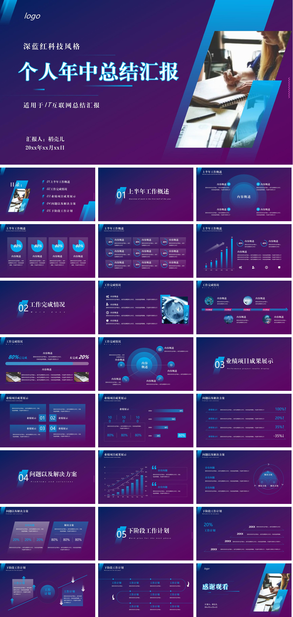 深蓝红渐变IT互联网个人年中总结.pptx