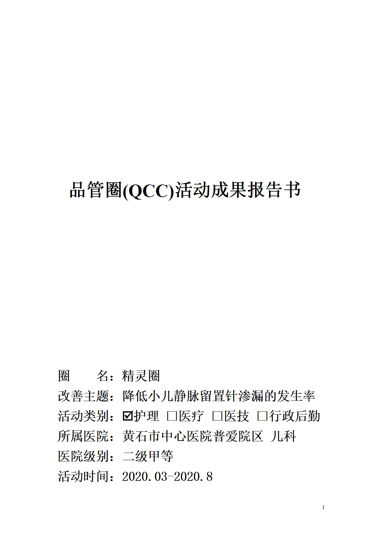 医院品管圈QCC报告案例