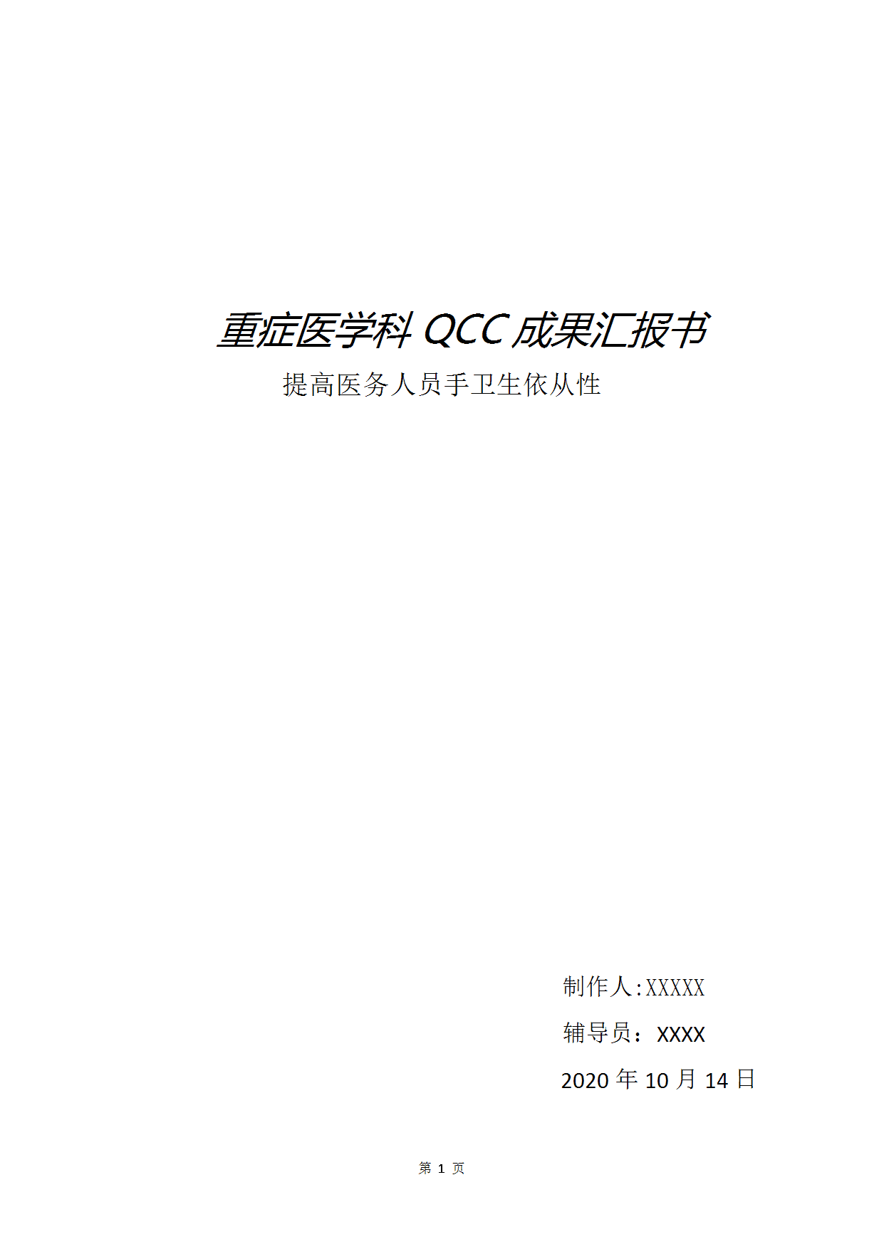 医院品管圈QCC报告案例
