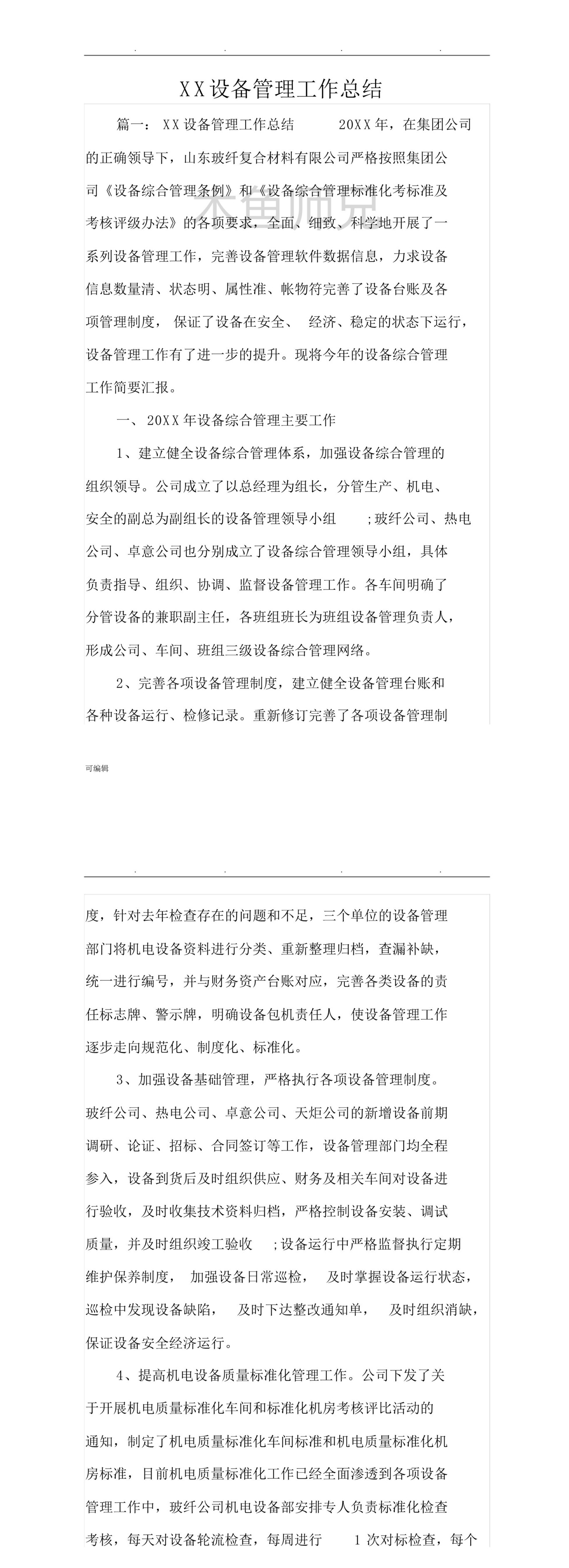 公司设备管理工作总结范本.pdf