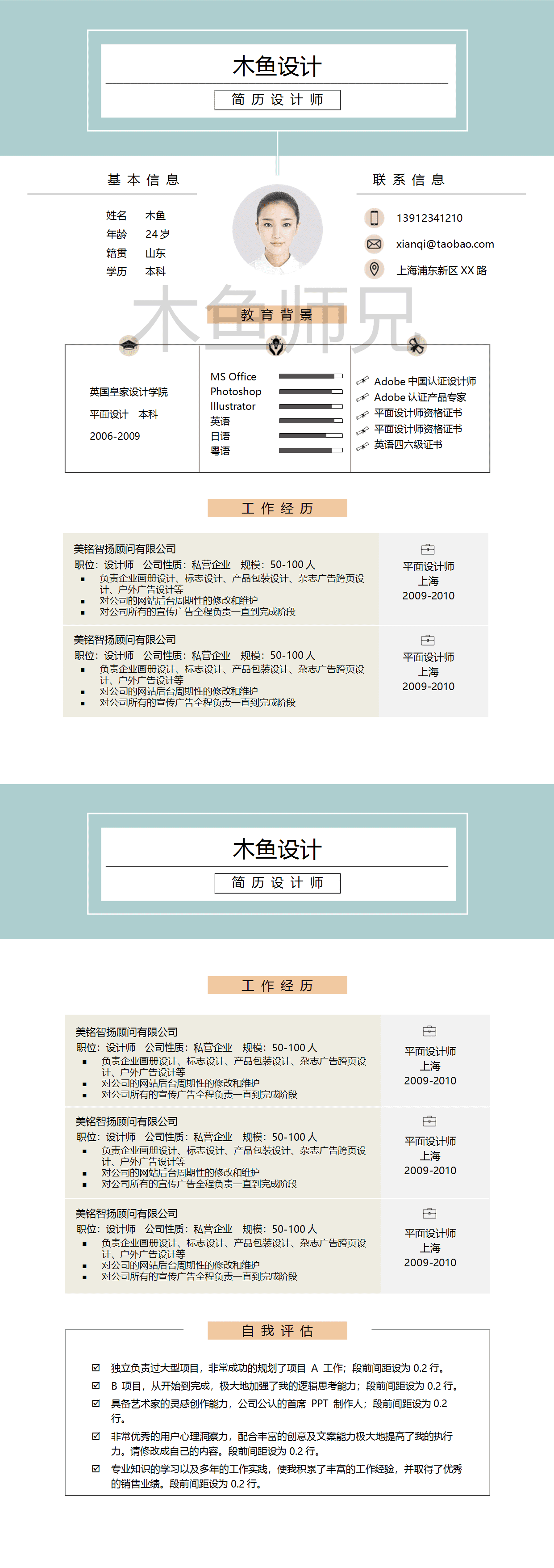 合集:[500套个人简历]双页个人简历模板15套