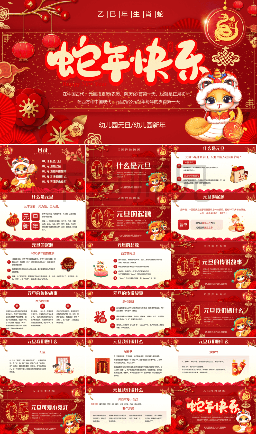 合集:蛇年元旦节新年风格工作总结工作计划PPT模板
