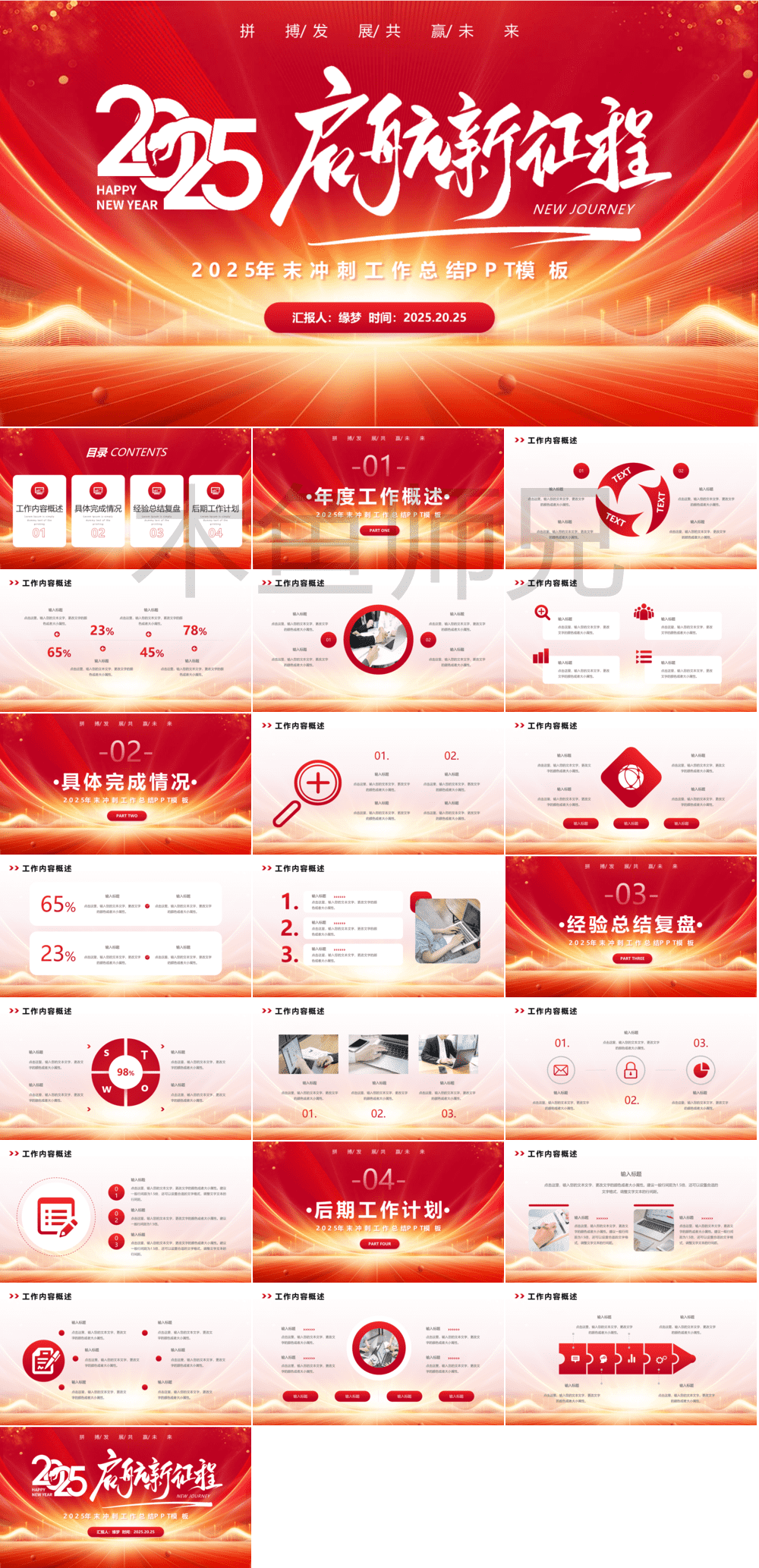 合集:红色蛇年工作总结工作计划PPT模板