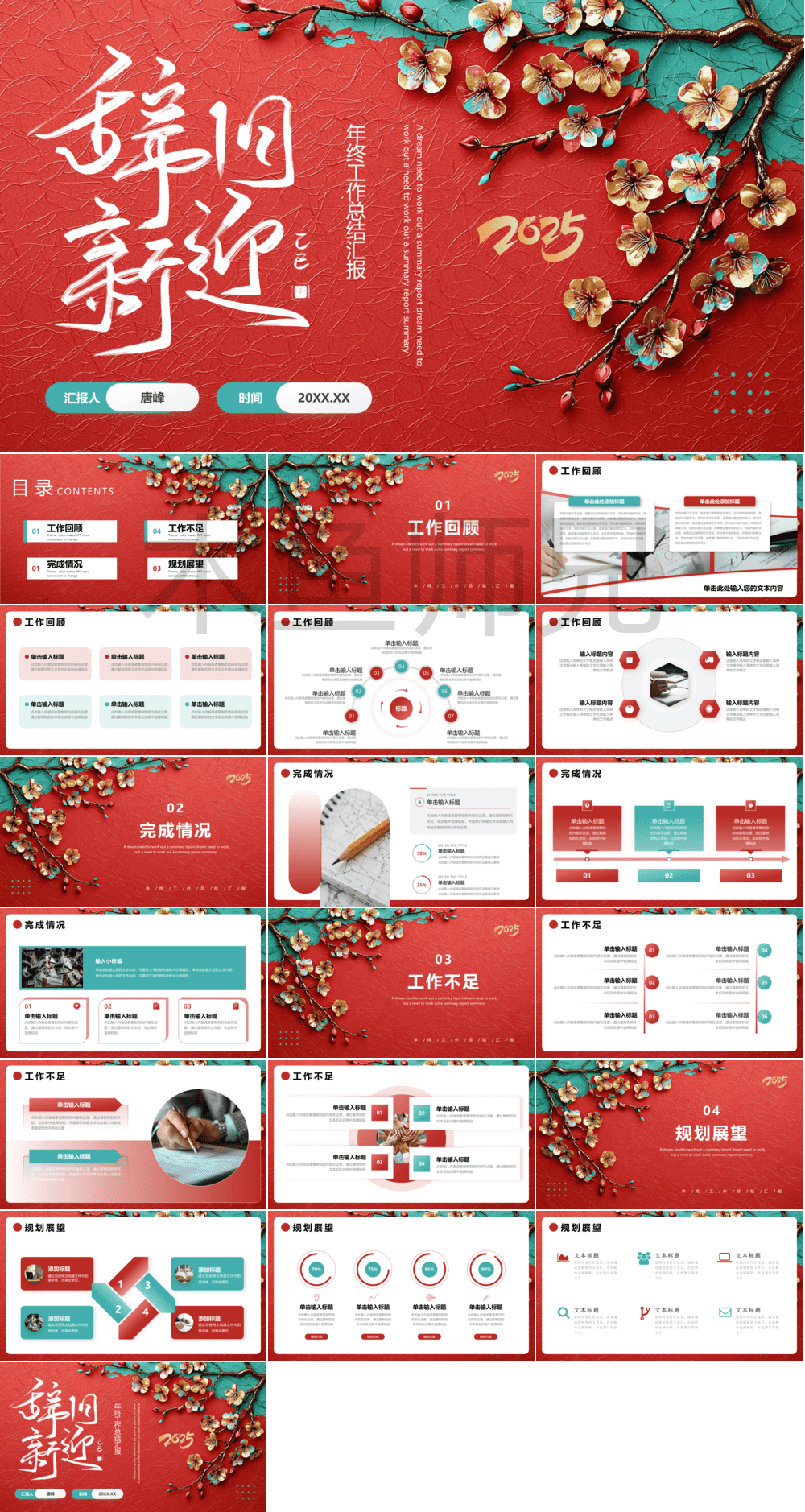 合集:红色蛇年年终总结工作规划工作总结PPT模板