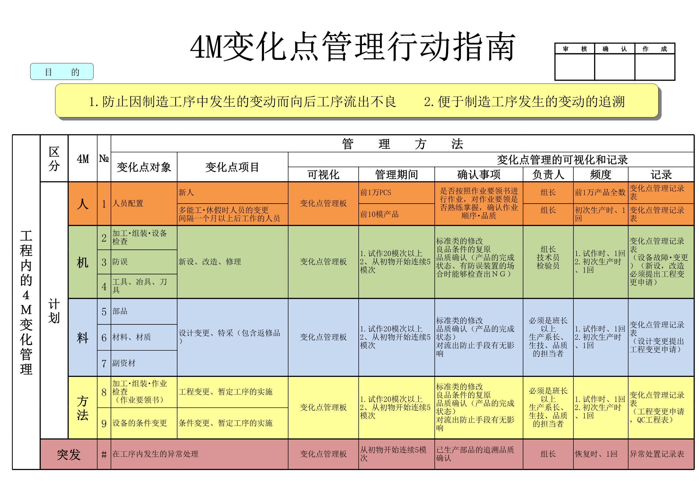 变更管理4M1E文件表格模板控制程序规定看板记录变化点4M矩阵图