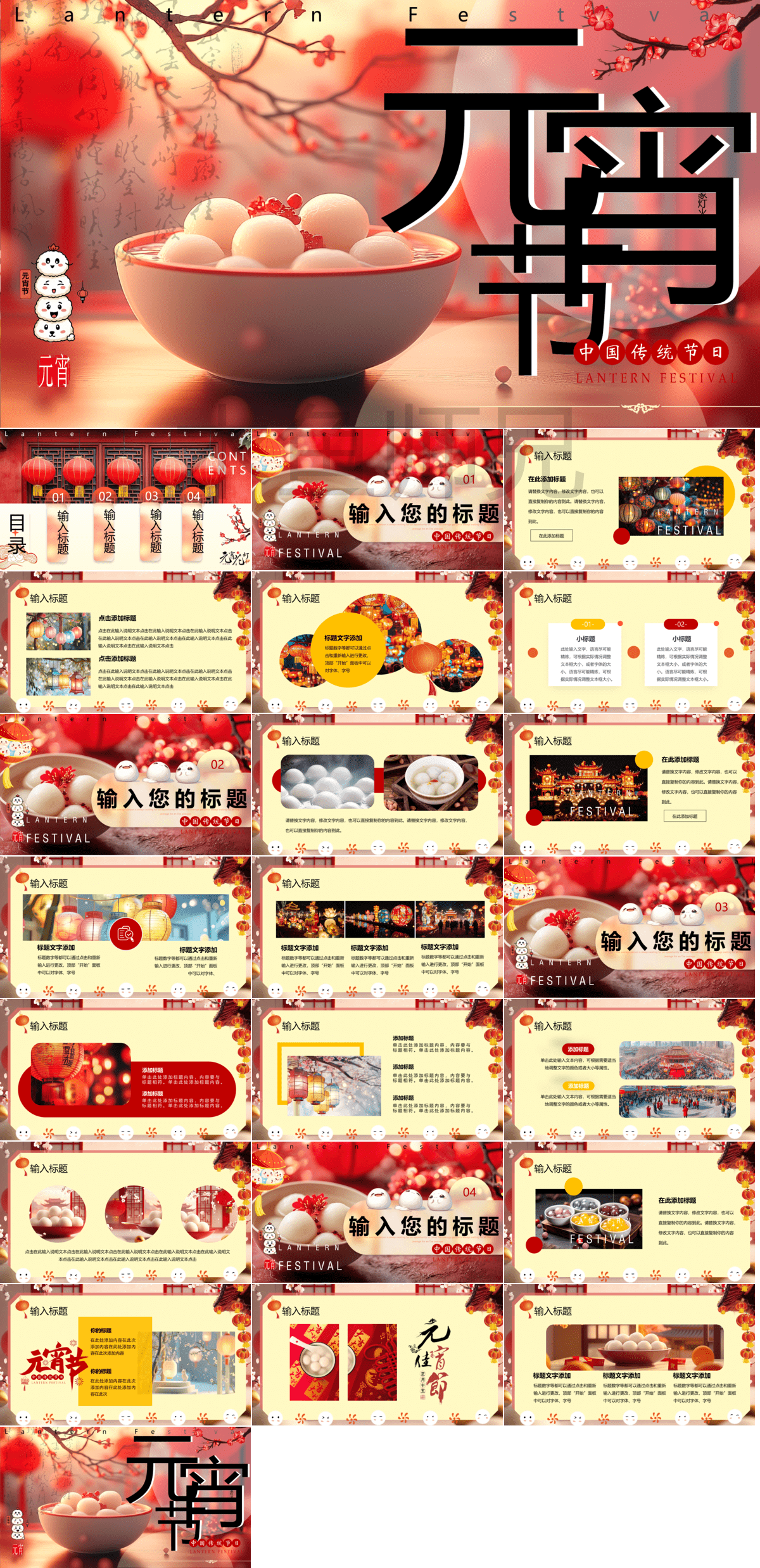蛇年元宵节元宵灯会元宵诗词PPT模板33份