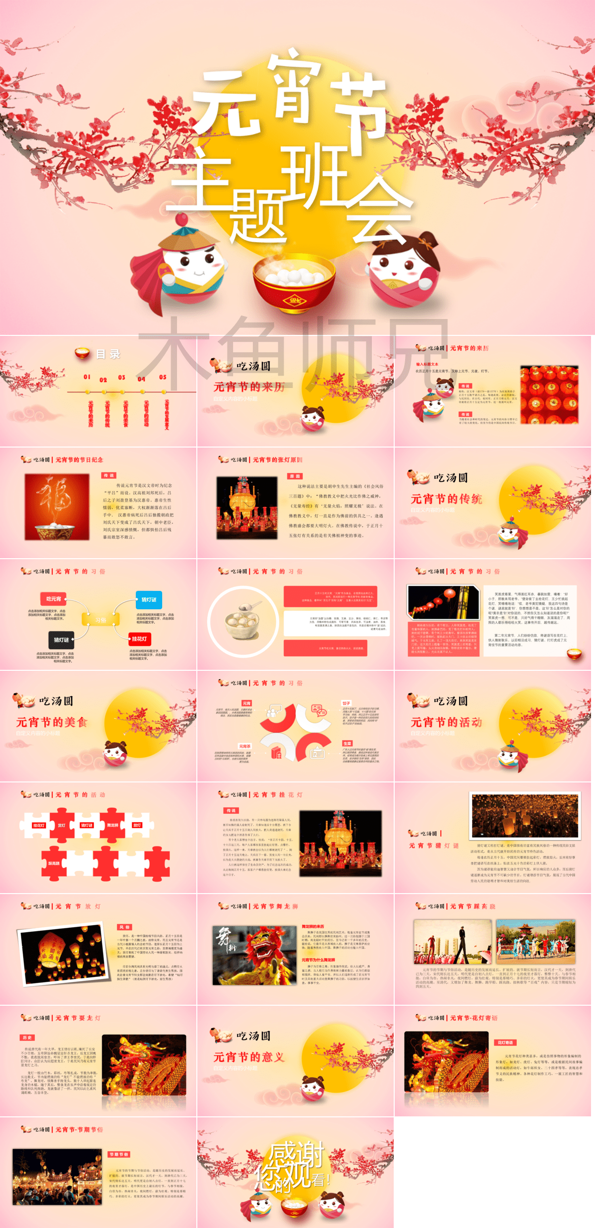 元宵节班会及班级活动PPT模板45份