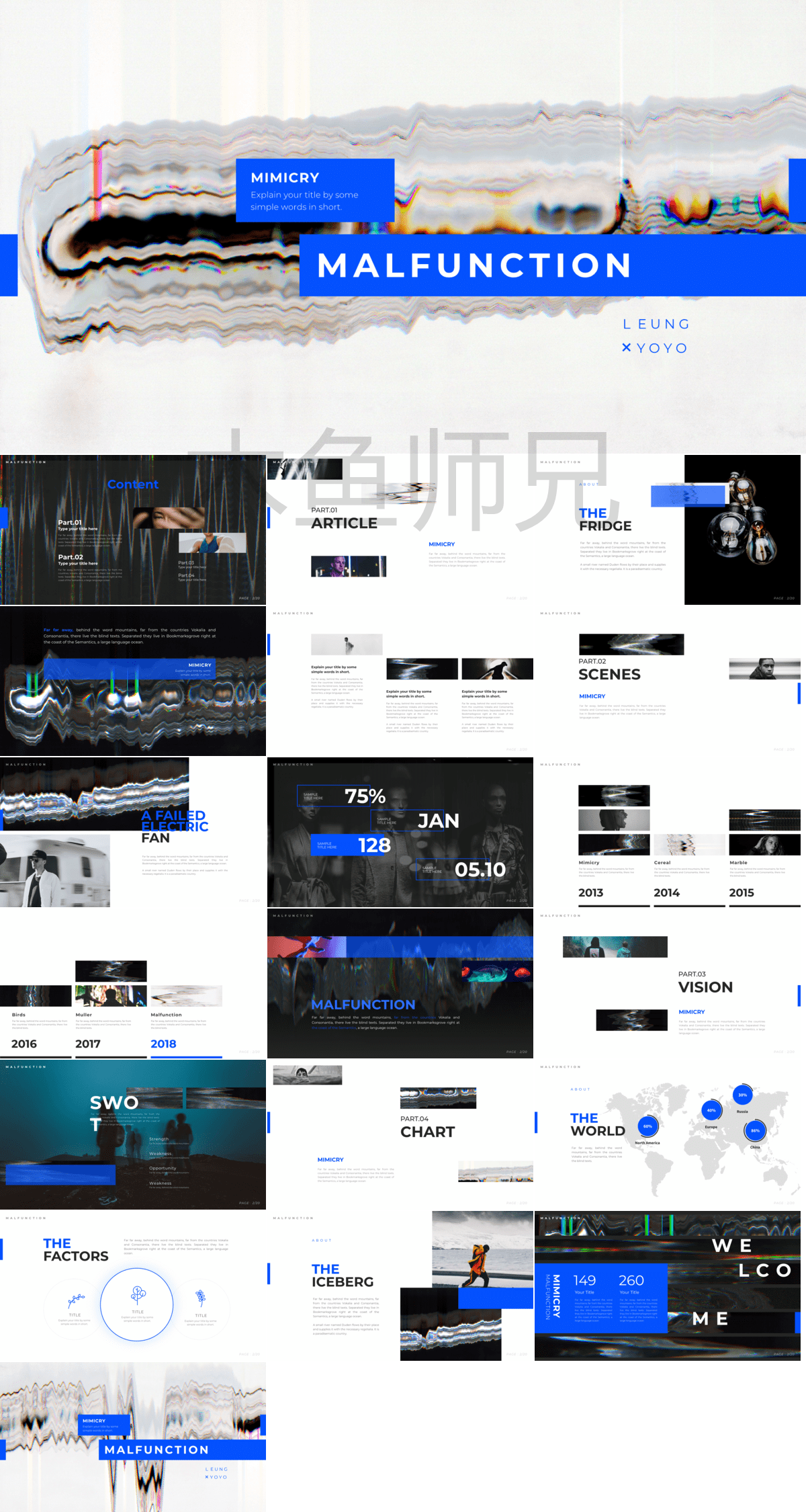 合集:61套酸性故障风PPT模板打包下载