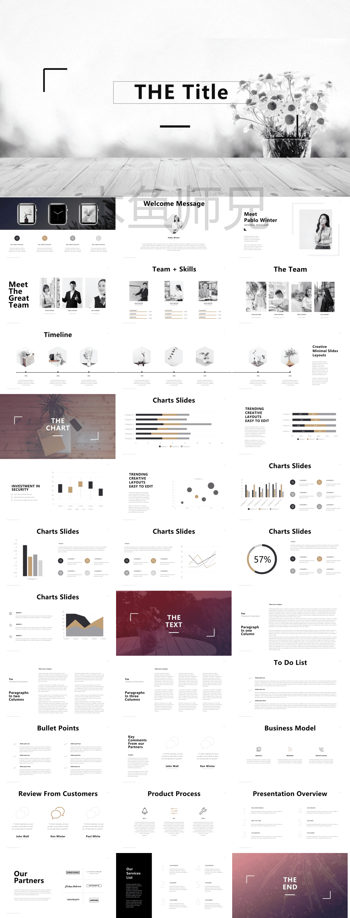 161套高端英文PPT模板免费打包下载;包括了:高端欧美风PPT、作品集PPT、商务汇报PPT、大气通用PPT、抽象艺术PPT、油画PPT、产品介绍PPT、