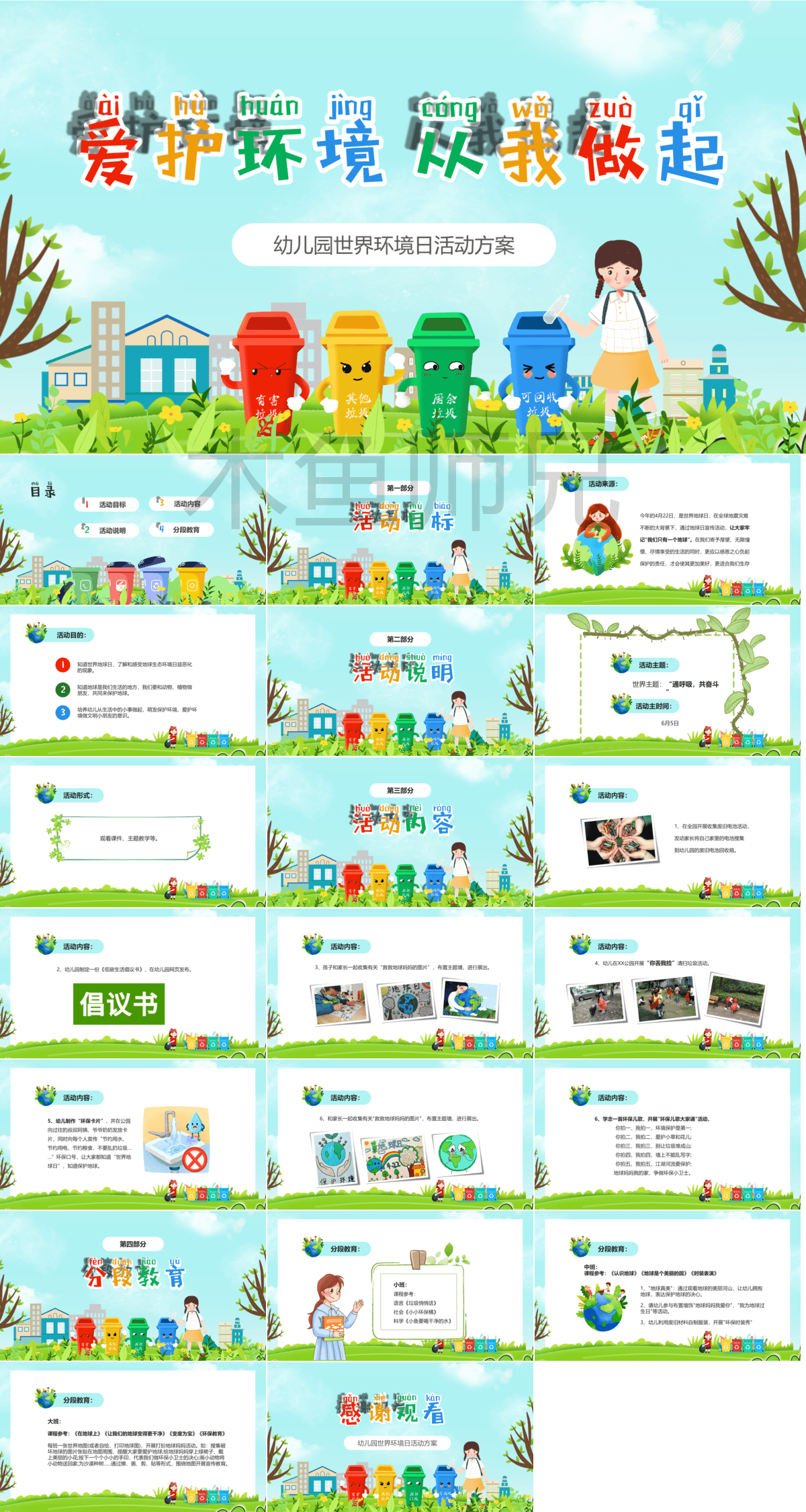 110套环保主题PPT模板免费打包下载;包括了:爱护环境低碳出行PPT、低碳环保PPT、节约用水保护环境PPT、垃圾分类呵护花园PPT、珍惜点滴节约