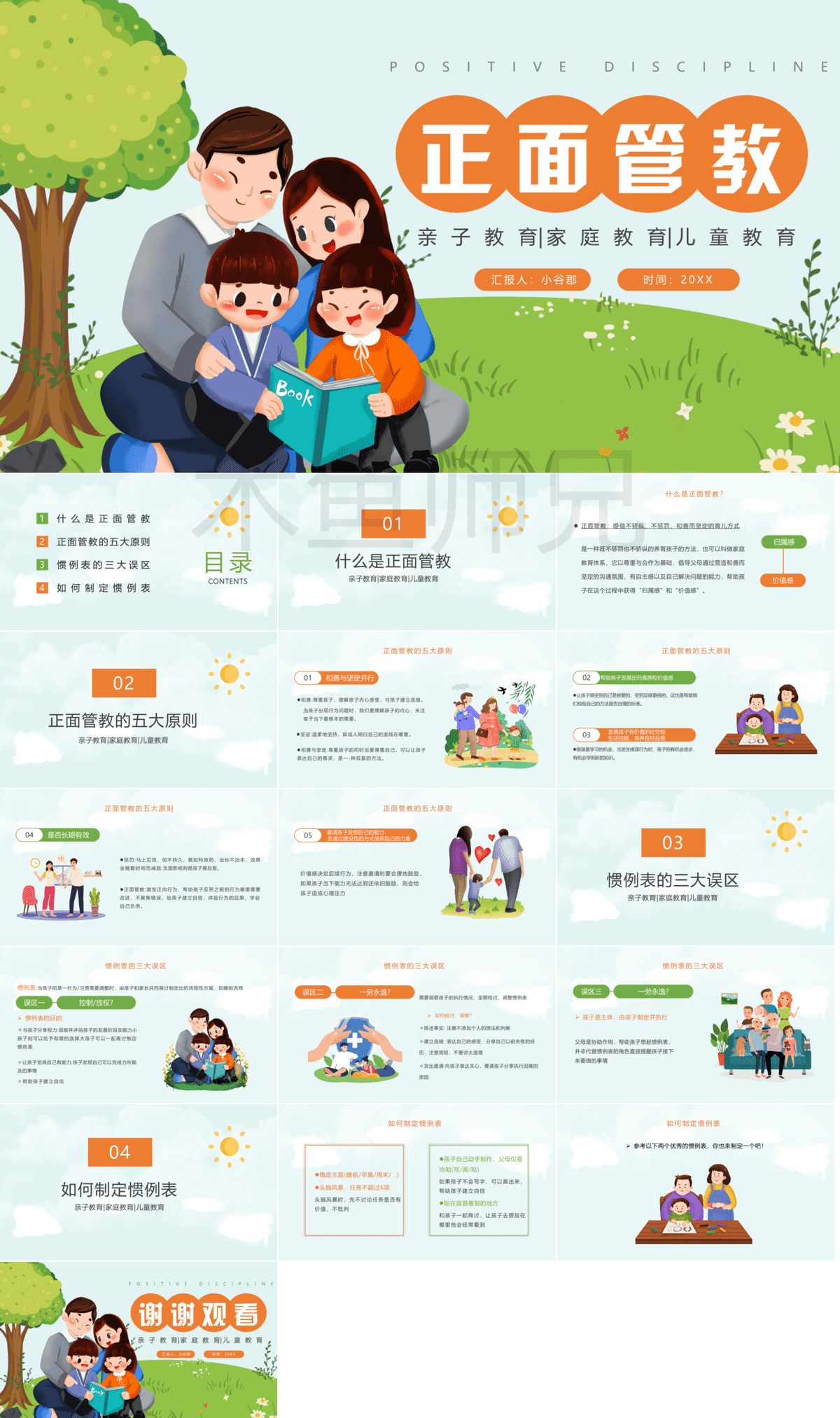 合集:中小学生正面管教PPT模板读书阅读分享会幼儿园家庭教育讲座课件