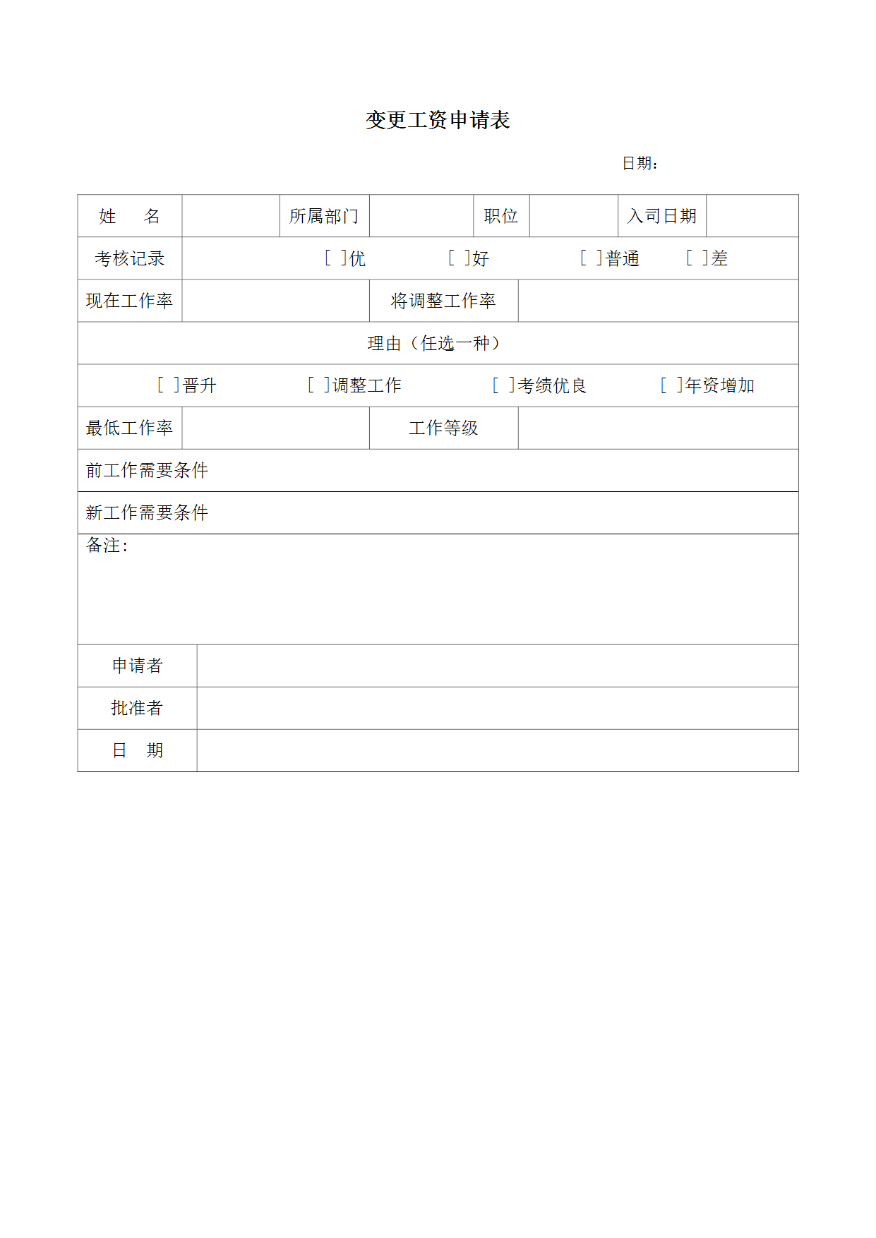 HR办公文件库-变更工资申请表.doc