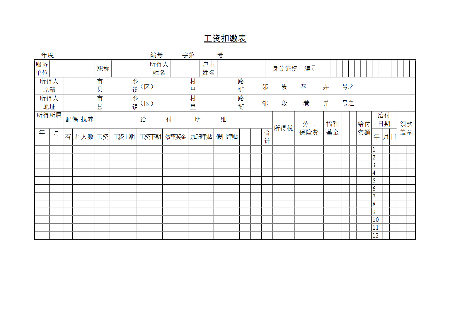 HR办公文件库-工资扣缴表.doc