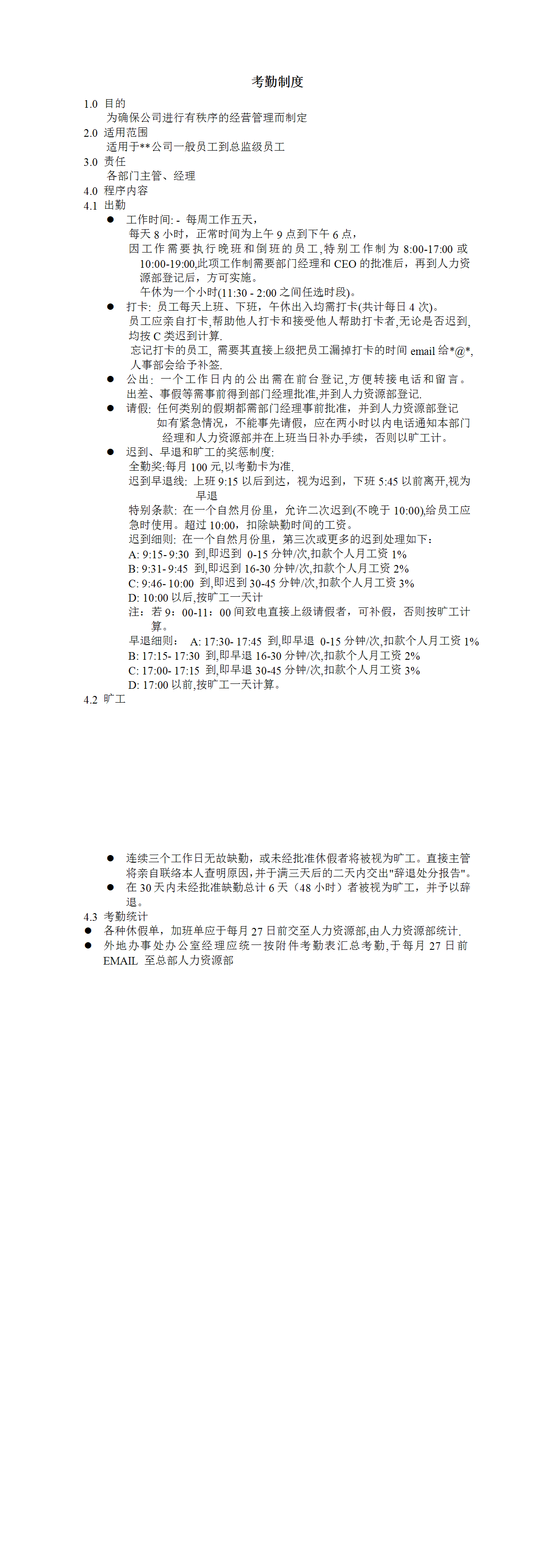 HR办公文件库-考勤制度.doc