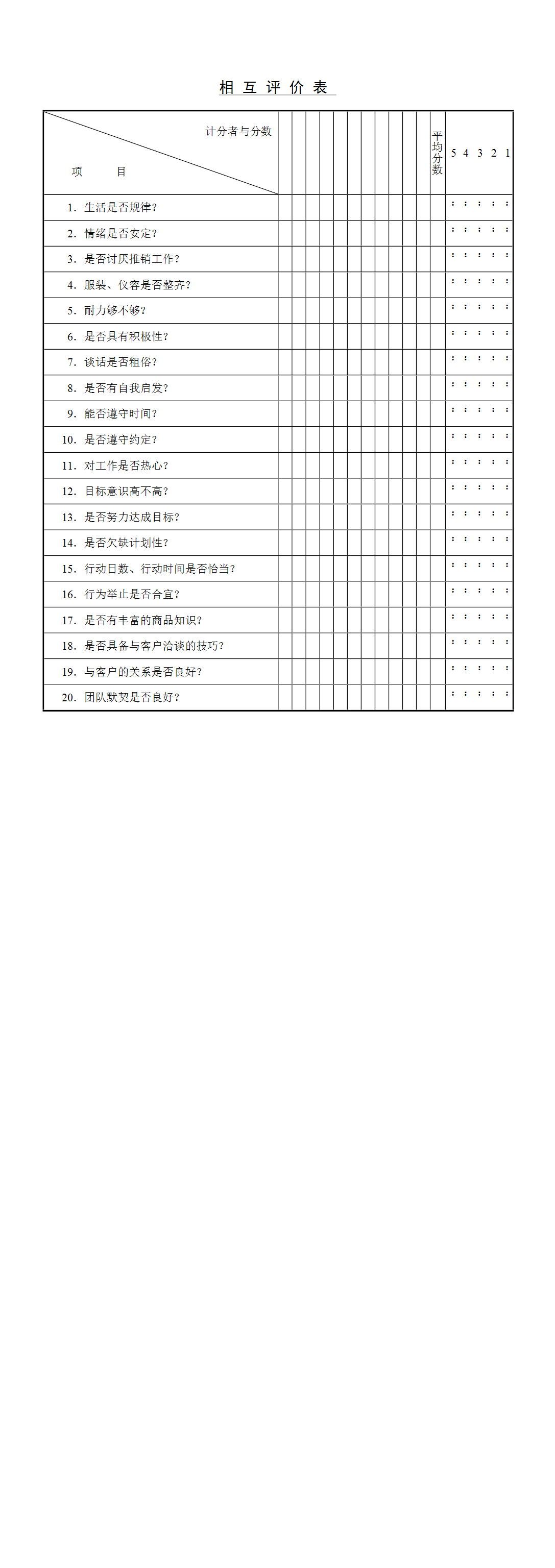 HR办公文件库-相互评价表.doc