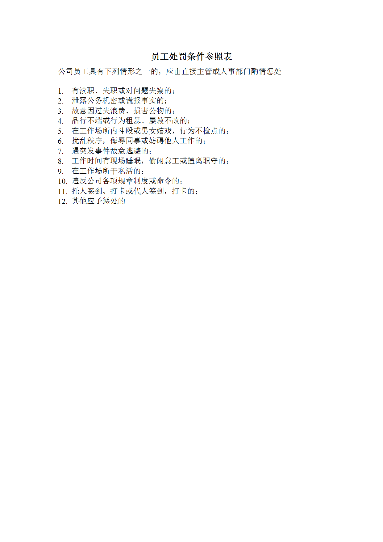 HR办公文件库-员工处罚条件参照表.doc