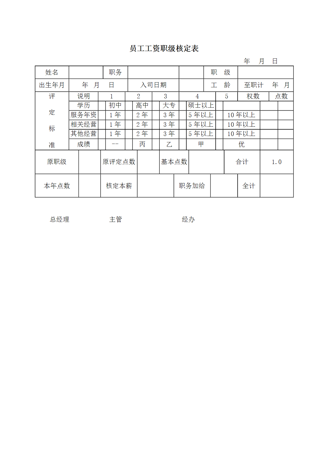 HR办公文件库-员工工资职级核定表.doc