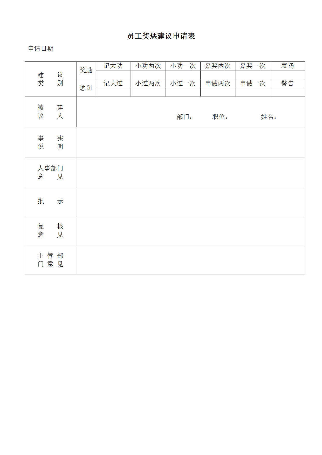 HR办公文件库-员工奖惩建议申请表.doc