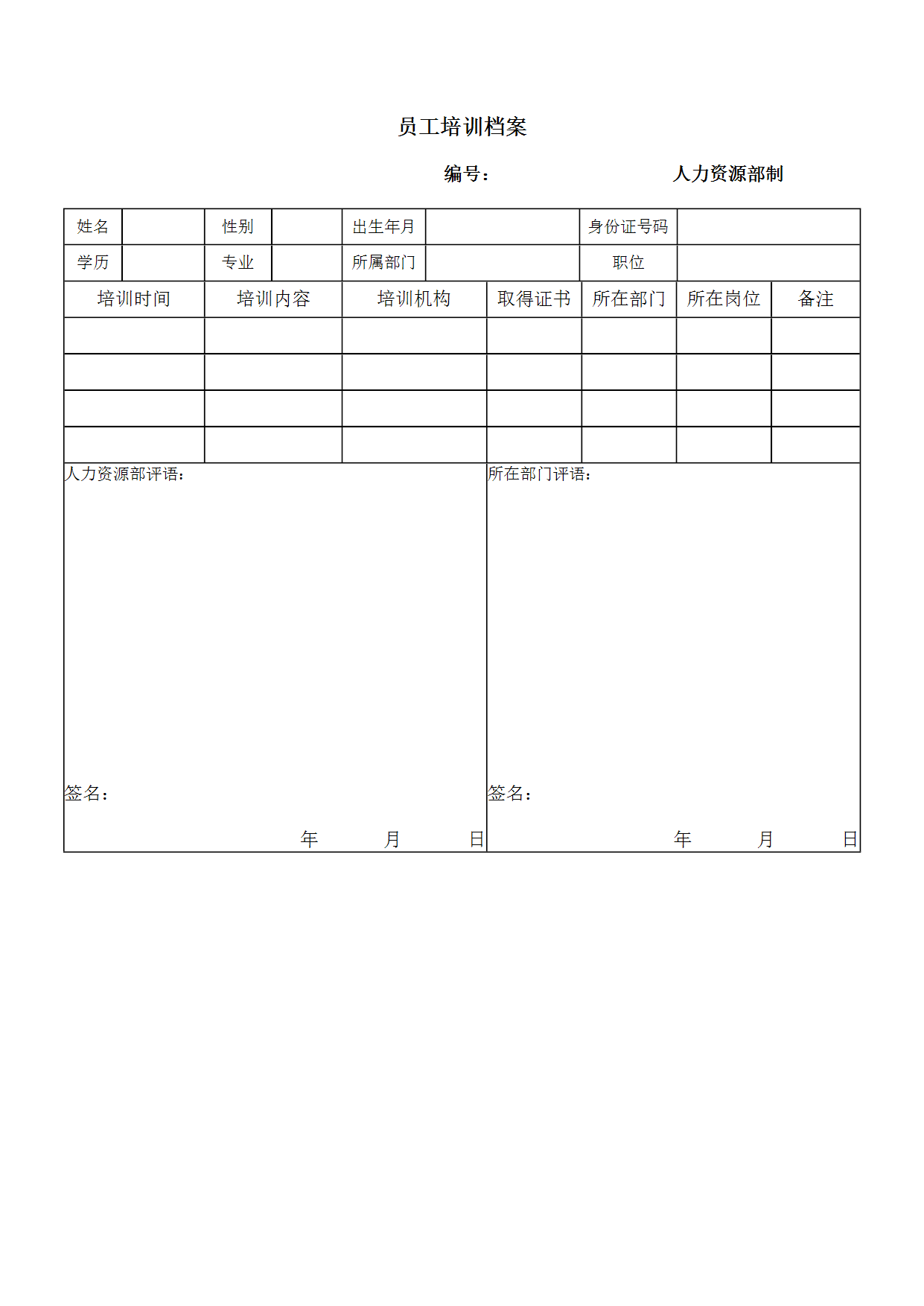 HR办公文件库-员工培训档案.doc