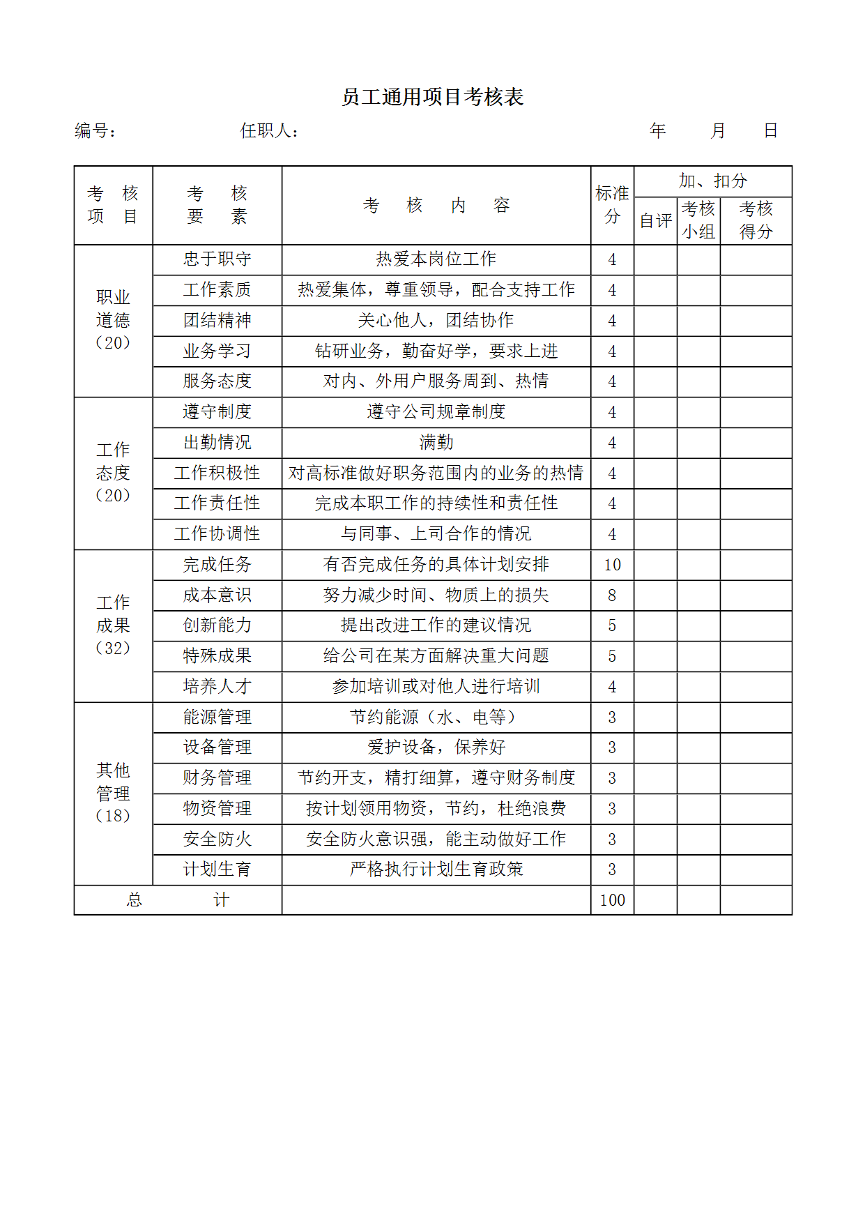HR办公文件库-员工通用项目考核表.doc