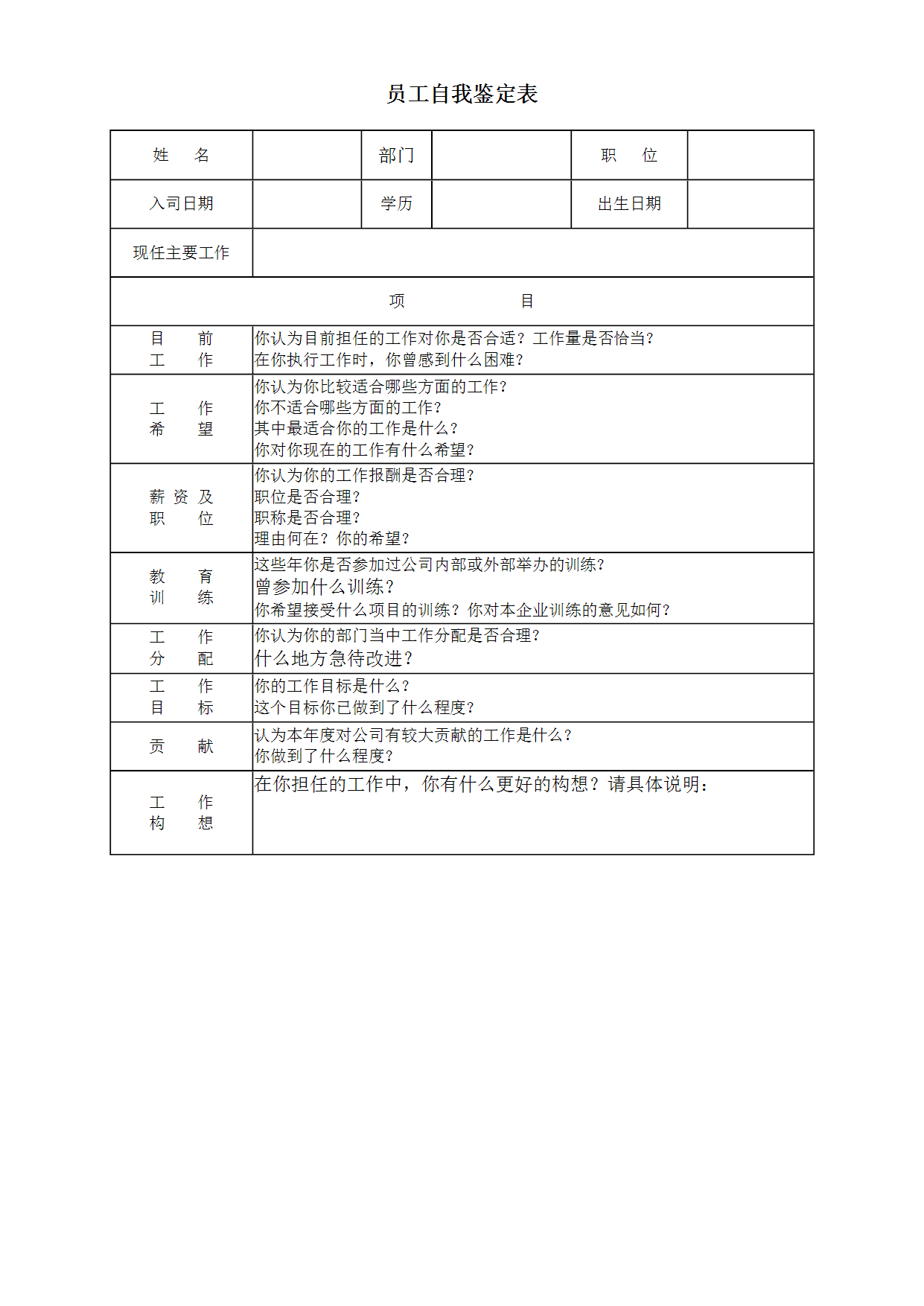 HR办公文件库-员工自评表.doc