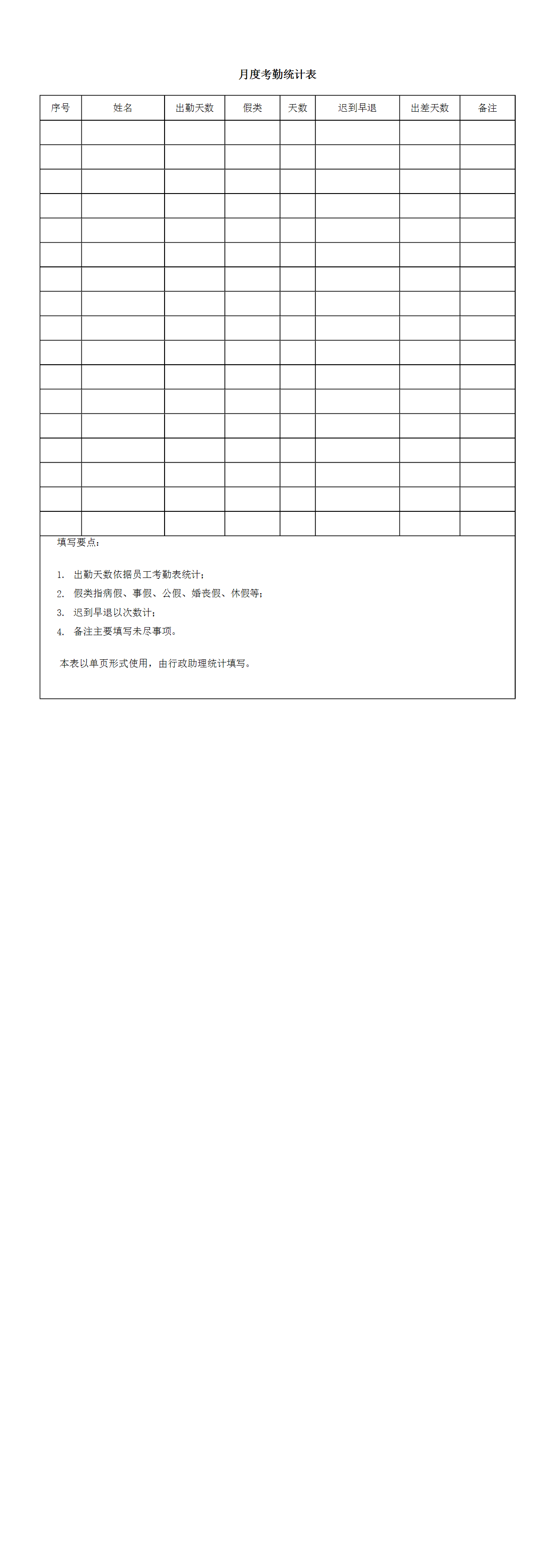 HR办公文件库-月度考勤统计表.doc