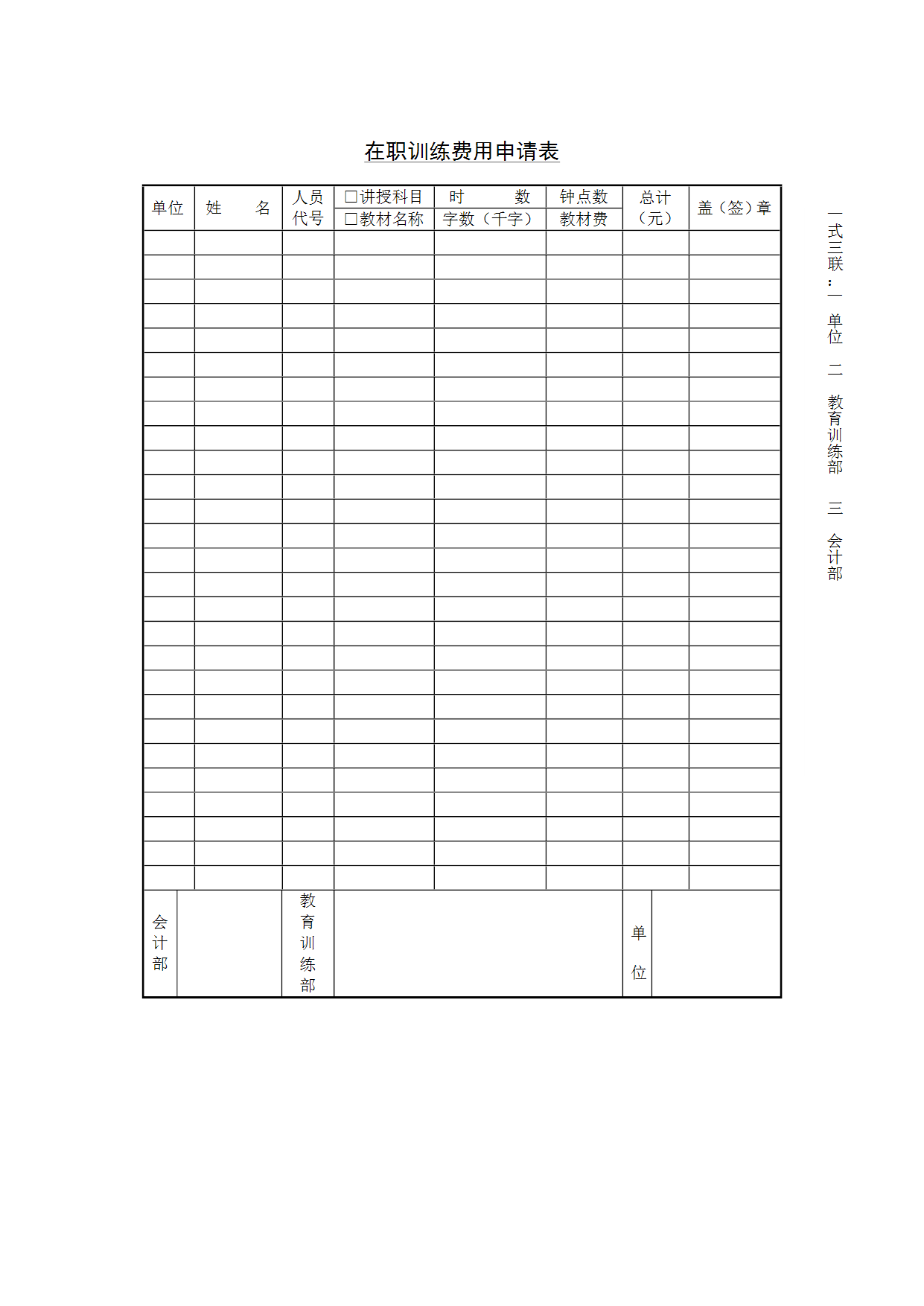 HR办公文件库-在职训练费用申请表.doc