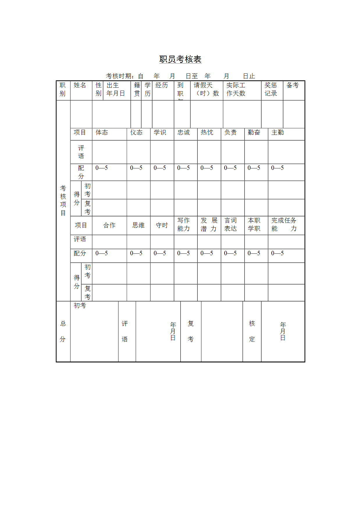 HR办公文件库-职员考核表.doc