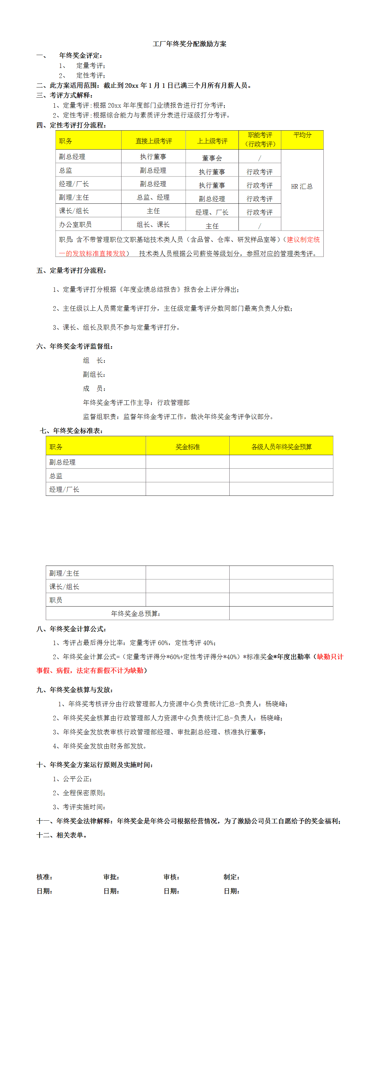 【年终奖篇】年终奖分配方案及年度绩效考核表.doc