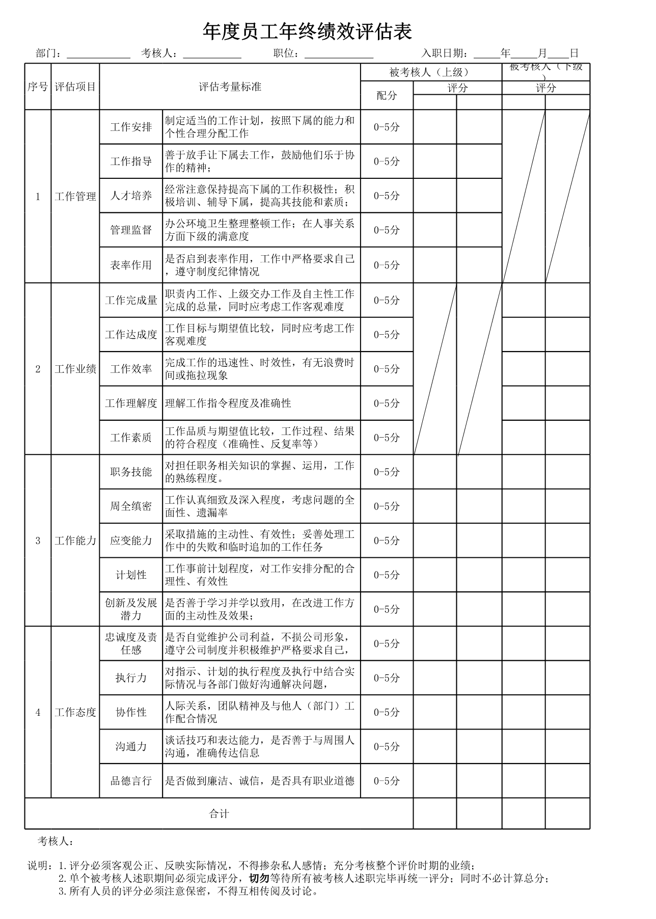 【年度考核篇】年度年终考核评分表(上下级).xls