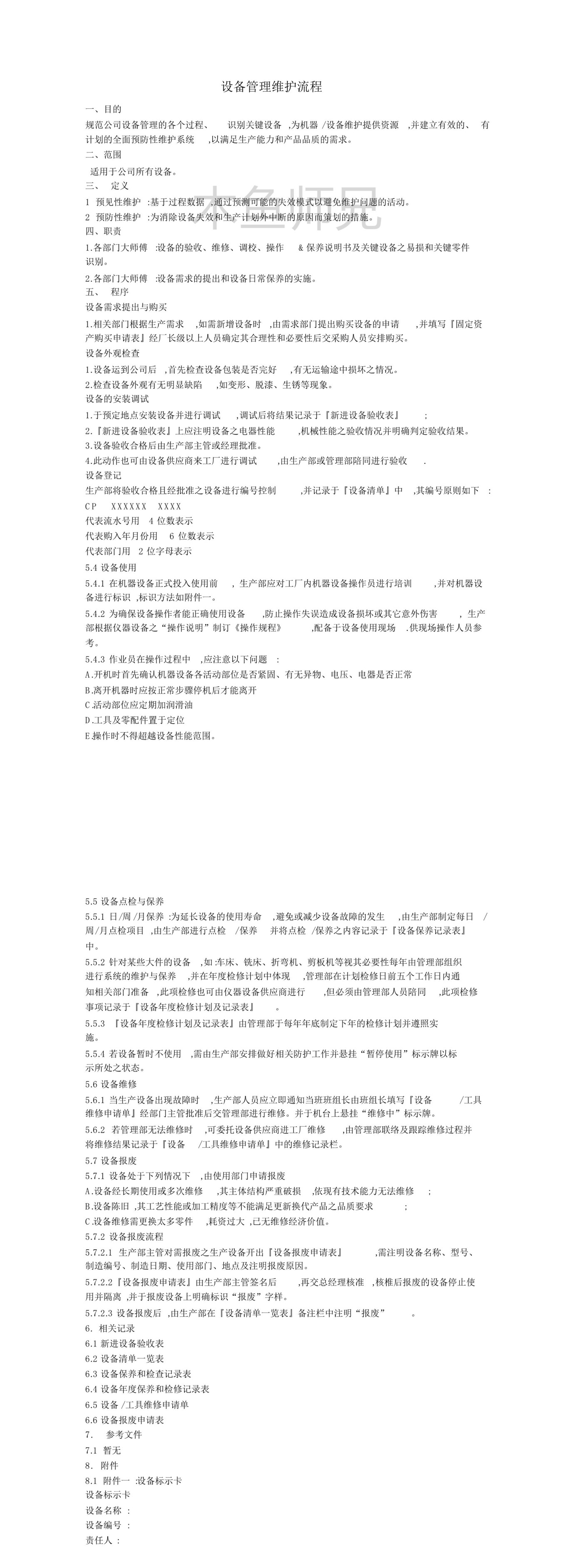 合集:机械生产资料机电工作指标施工制度设备-SB02-设备管理流程