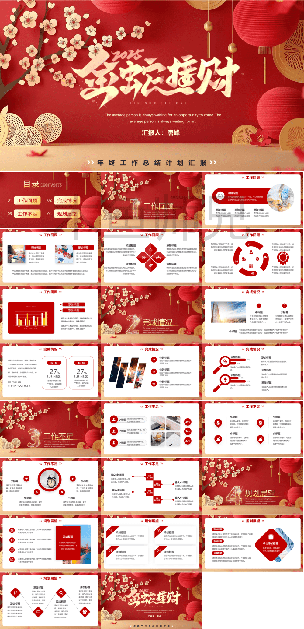 合集:红色蛇年年终总结工作规划工作总结PPT模板