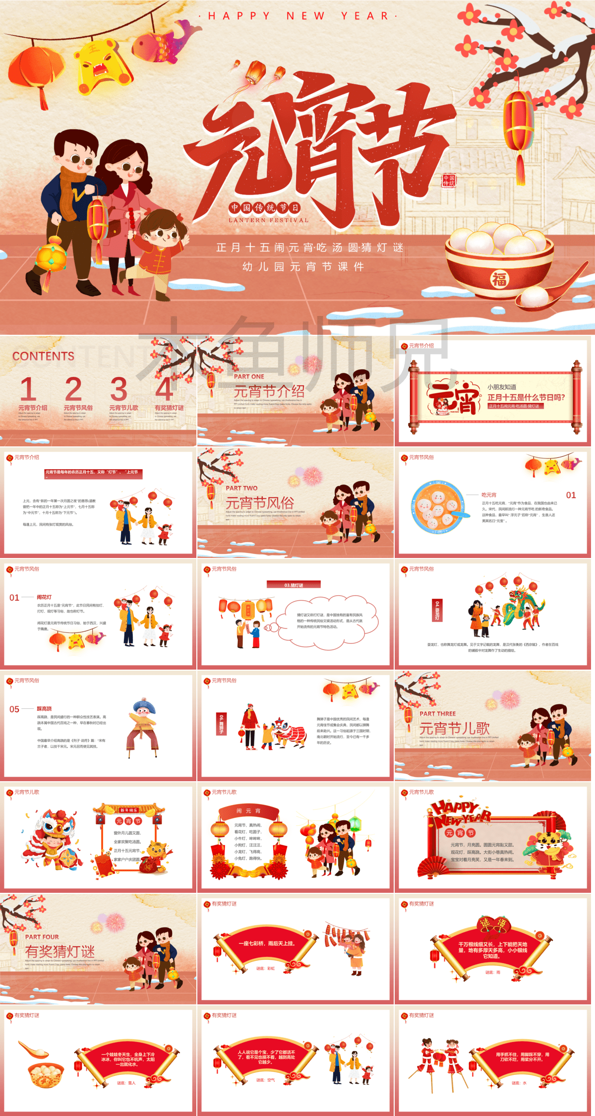 元宵节班会及班级活动PPT模板45份