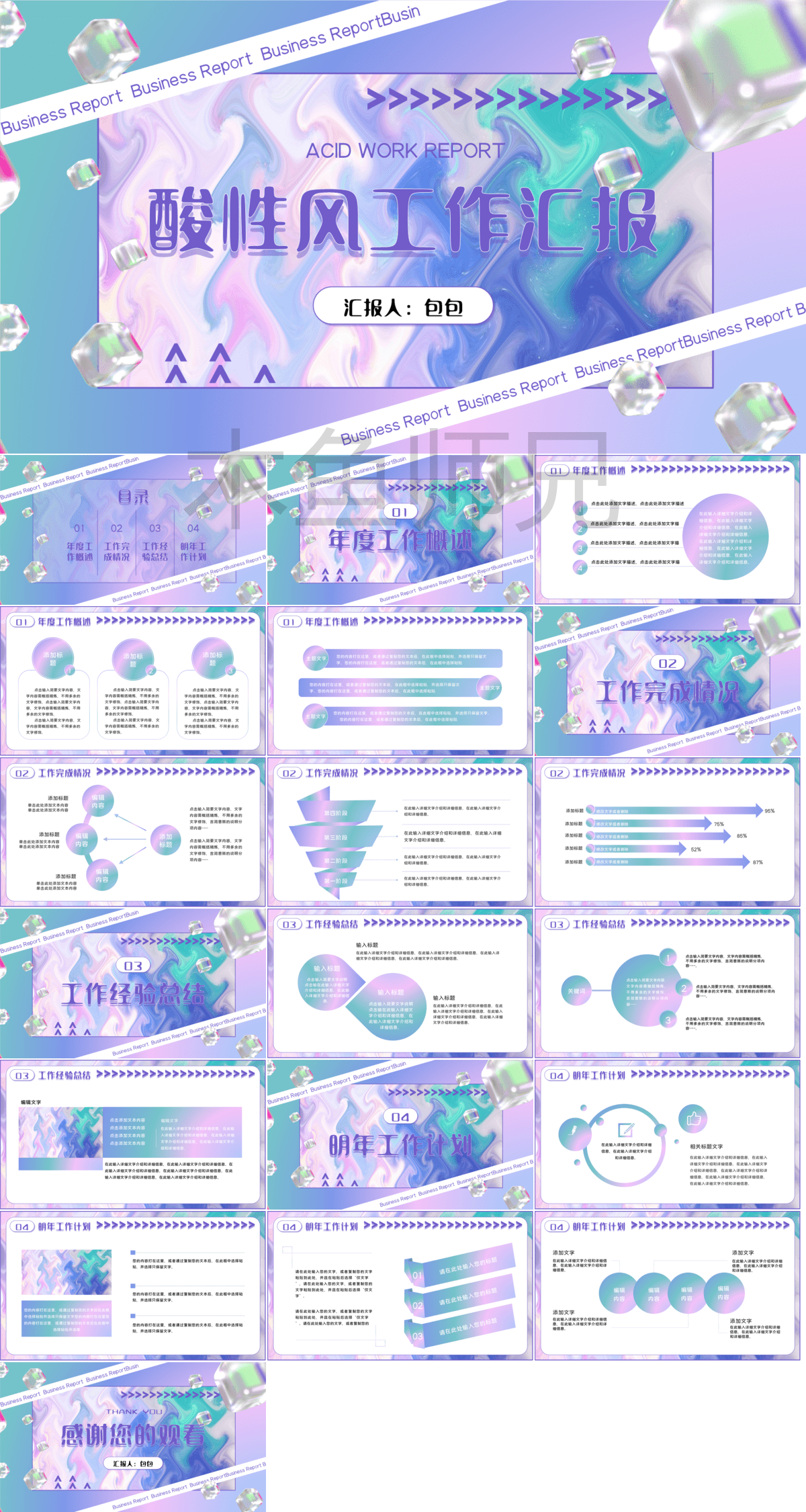 61套酸性故障风PPT模板打包下载