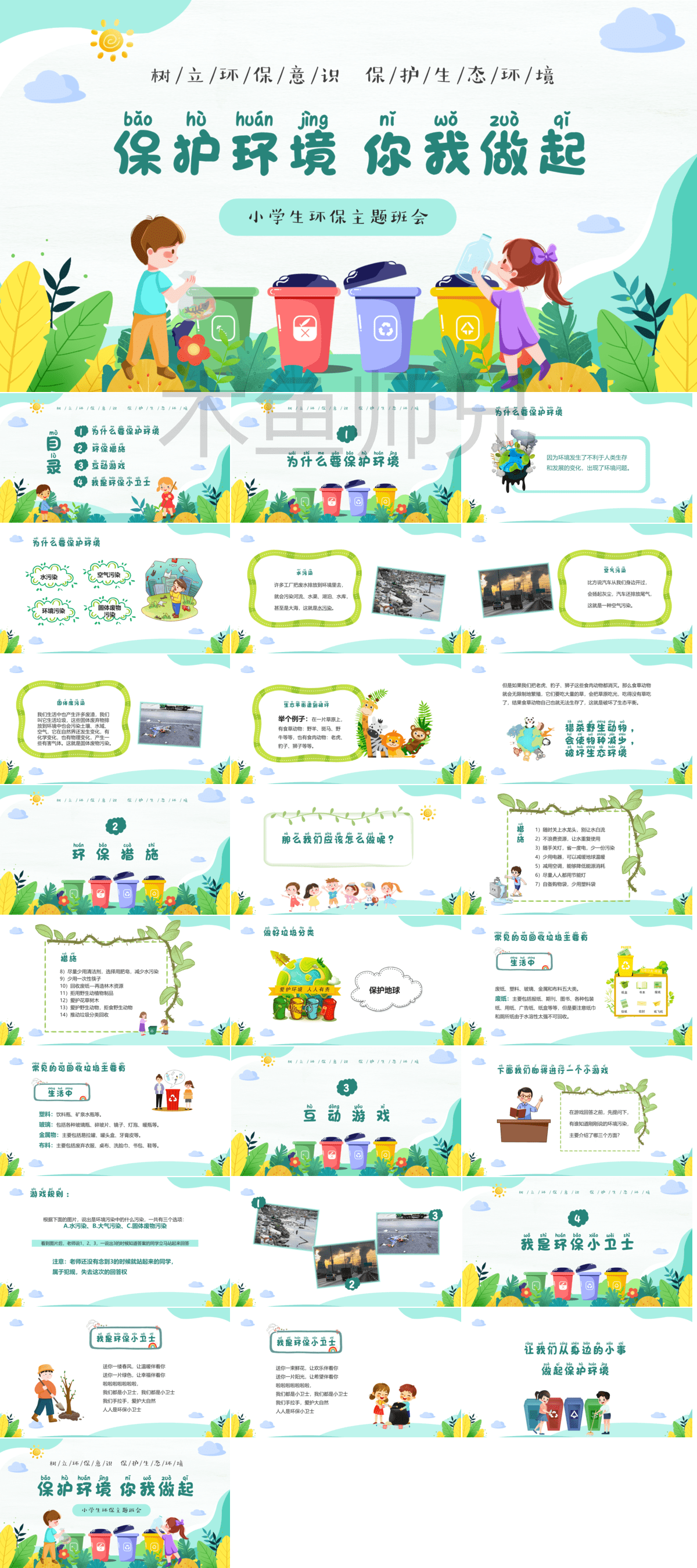 110套环保主题PPT模板免费打包下载;包括了:爱护环境低碳出行PPT、低碳环保PPT、节约用水保护环境PPT、垃圾分类呵护花园PPT、珍惜点滴节约