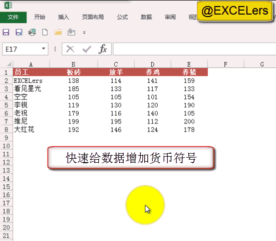 | 44 | 043-单元格格式-快速给数据增加货币单位.GIF | 揍我 | 单元格格式 | 快速给数据增加货币单位 |