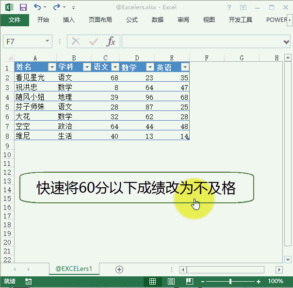 | 67 | 066-查找替换-换快速将小于60的成绩替换为不及格.GIF | 揍我 | 查找替换 | 换快速将小于60的成绩替换为不及格 |