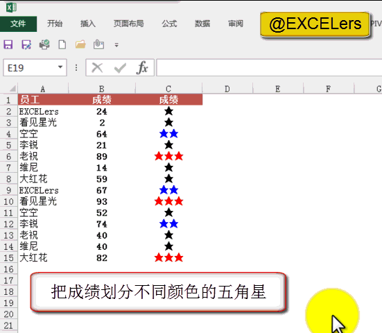 | 50 | 049-单元格格式-将不同的成绩显示不同颜色和个数的五角星.GIF | 揍我 | 单元格格式 | 将不同的成绩显示不同颜色和个数的五角星 |