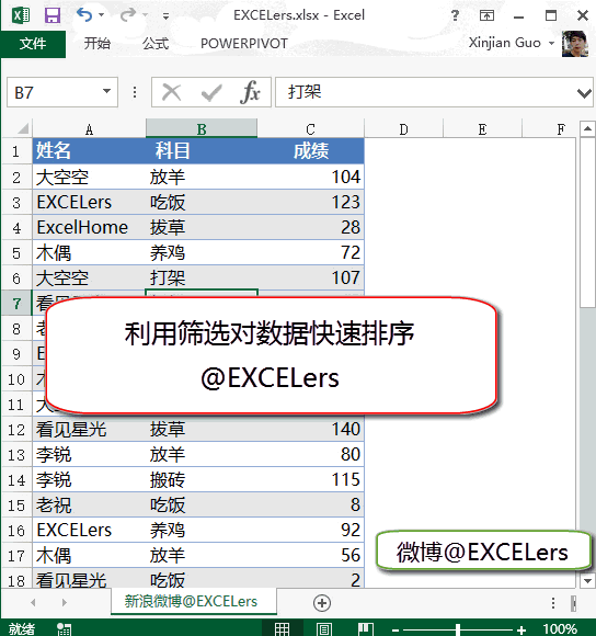 | 180 | 179-透视表-多字段排序.GIF | 揍我 | 透视表 | 多字段排序 |