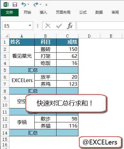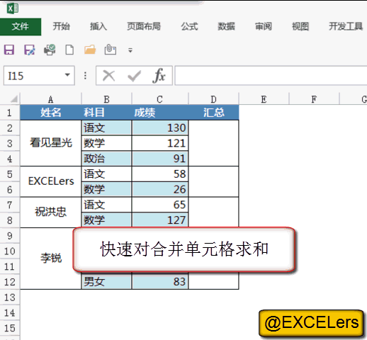 | 227-常用函数-合并单元格区域快速求和.GIF | 揍我 | 常用函数 | 合并单元格区域快速求和 |