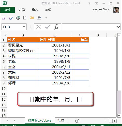 | 218-常用函数-TEXT函数提取员工生日信息.GIF | 揍我 | 常用函数 | TEXT函数提取员工生日信息 |