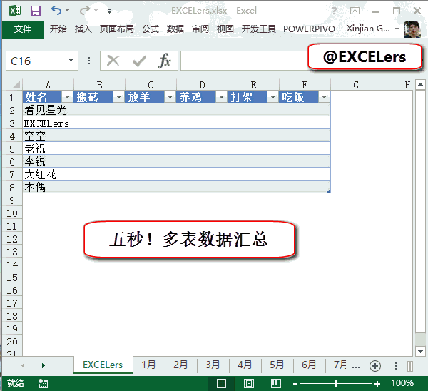 | 176 | 175-透视表-多表数据汇总,透视表也可以.GIF | 揍我 | 透视表 | 多表数据汇总,透视表也可以 |