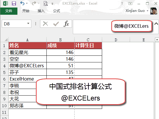 | 224-常用函数-使用组合函数实现中国式排名.GIF | 揍我 | 常用函数 | 使用组合函数实现中国式排名 |