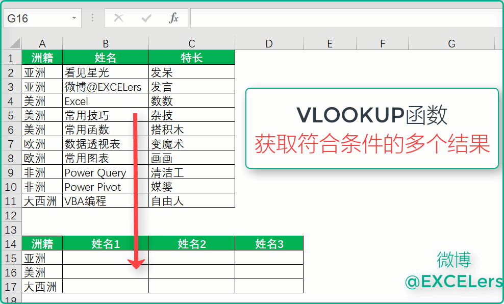 | 228-常用函数-VLOOKUP提取符合条件的多个结果.GIF | 揍我 | 常用函数 | VLOOKUP提取符合条件的多个结果 |