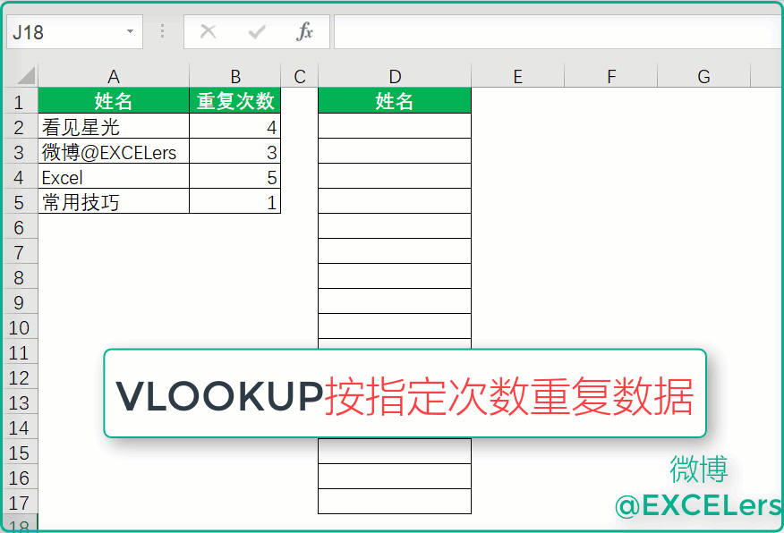 | 233-常用函数-VLOOKUP按指定次数重复数据.GIF | 揍我 | 常用函数 | VLOOKUP按指定次数重复数据 |