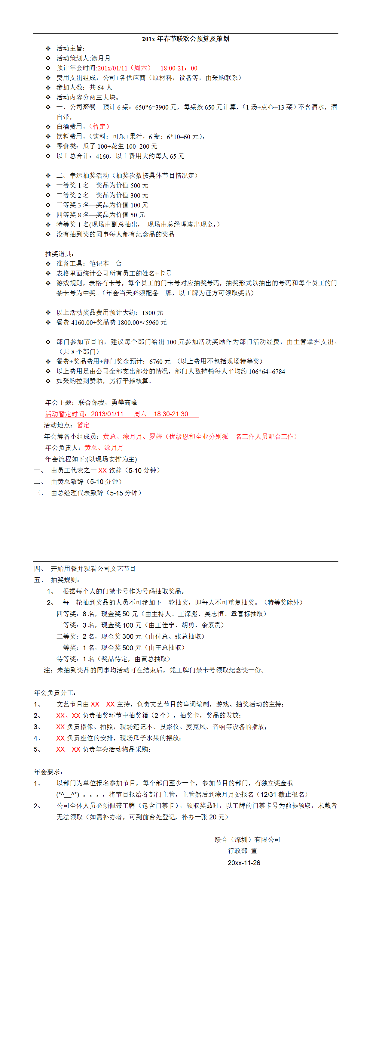 声明:本信息来源于【年会策划方案】春节联欢会预算及策划.doc,仅用于学习和技术交流,如有侵权或其他问题,请联系本站处理。