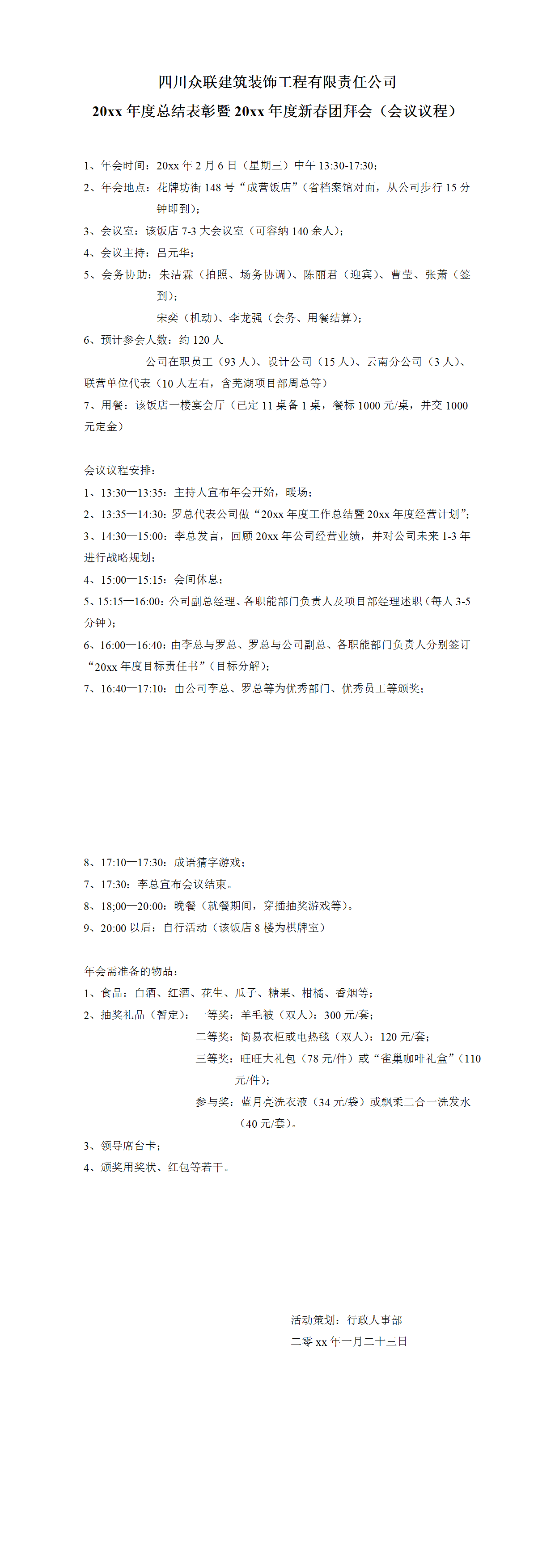 声明:本信息来源于【年会策划方案】年会工作流程.doc,仅用于学习和技术交流,如有侵权或其他问题,请联系本站处理。